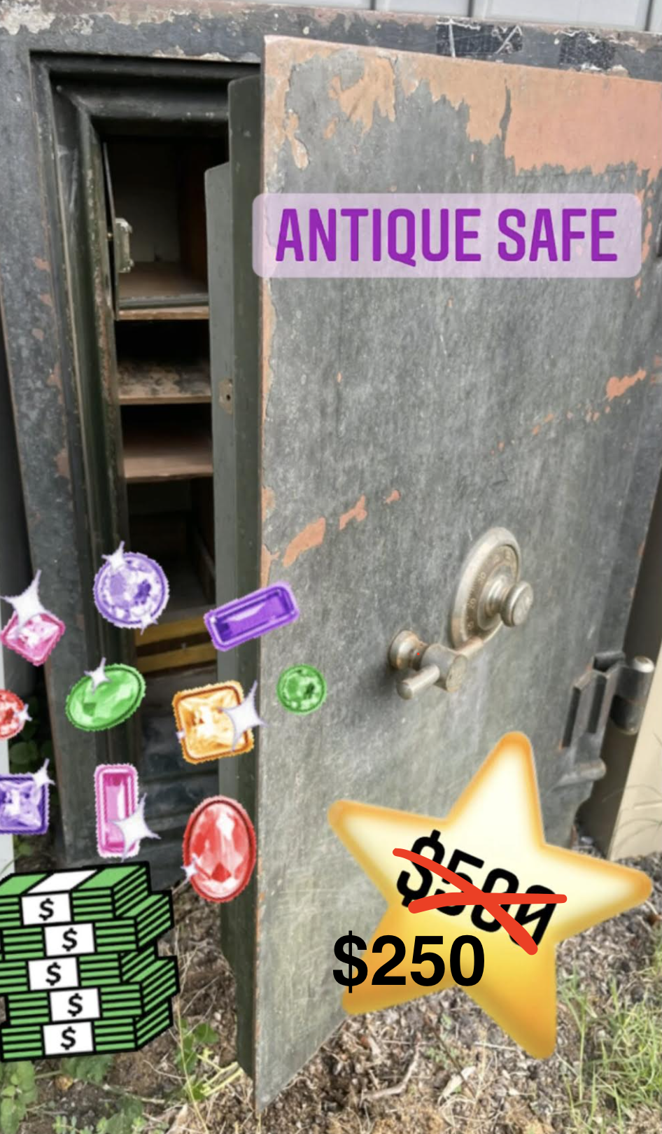 This antique safe is very very heavy. Forklift recommended for pick up/transport.